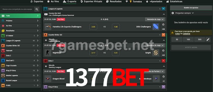 O 1377bet oferece uma grande seleção de opções de apostas em e-sports com probabilidades competitivas